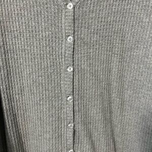 🟢Colsie Gray V Neck Thermal Button Oversized Front Long Sleeve Shirt Size S