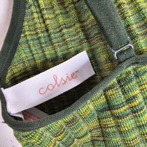 Colsie Green and Yellow Ribbed Stripe Keyhole Spaghetti Strap Bralette Medium