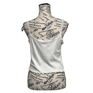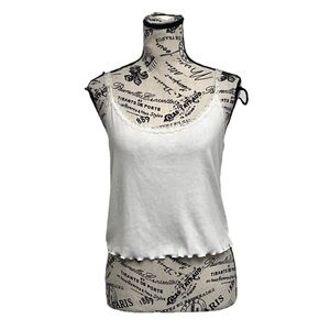 Colsie Ivory Lace Trim Crop Top Ribbed Knit L Boho Hippie Ethereal Balletcore L