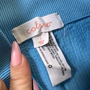 Comfortable seamless ribbed bike shorts in a light blue shade from Colsie. High wide waistband for a secure fit. Soft, stretch fabric with clean lines. Versatile for workouts or lounge