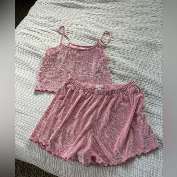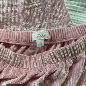 Pink Velvet Colsie matching set from target. Had to buy separately but selling the pieces together. Only worn once so it's in perfect condition. The top is a bit cropped.