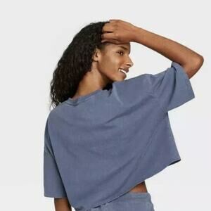 Super cute crop top tee from Colsie. Medium Blue Acid Wash in color.