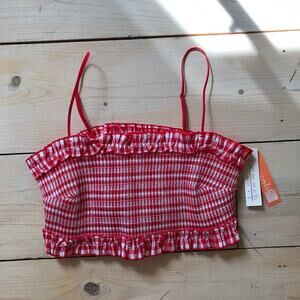 Colsie NWT Women's Red Gingham Woven Bandeau Bralette Size XL