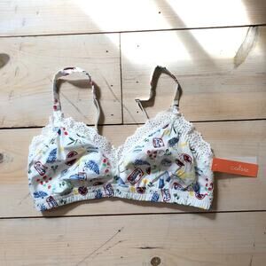 Colsie NWT Women's Woven Bralette White Fruit Print Size L