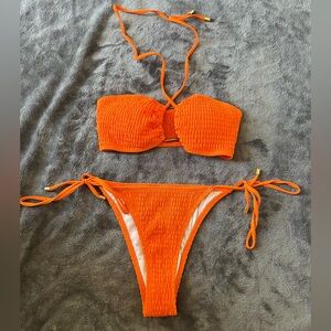 Colsie Orange Ribbed V-Neck Top