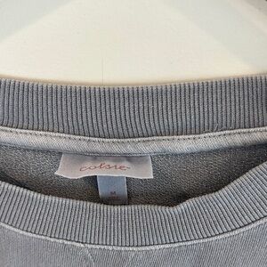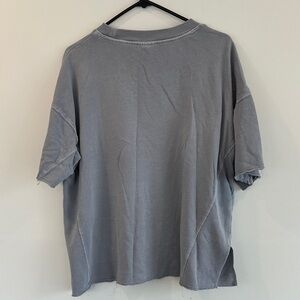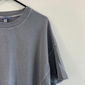 Casual gray oversized sweatshirt; thinner sweatshirt. Perfect for everyday wear. Short sleeve.