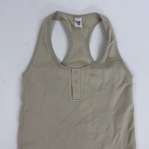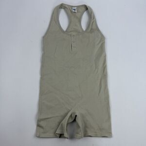 Colsie Racerback One Piece Romper Henley Waffle Knit Stretch Beige/Taupe Sz L