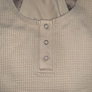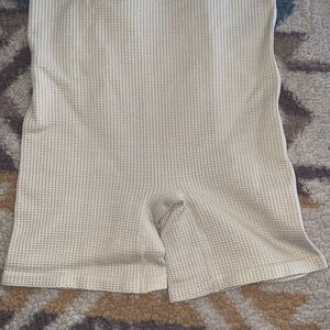 Tan unitard, waffle texture with buttons, racerback straps