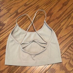 Ribbed bralette in cream. Features strappy back detail.
