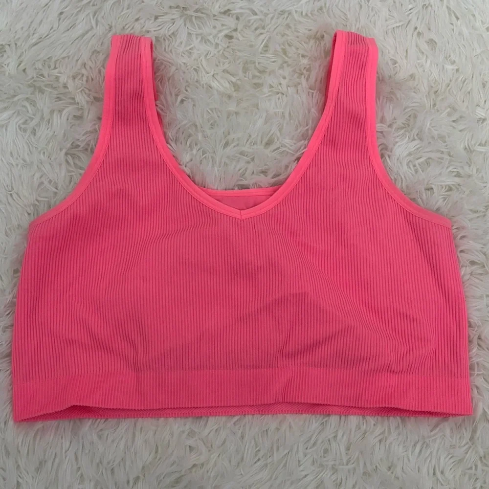 Vibrant pink ribbed athletic crop tank by Colsie. Ideal for active wear.