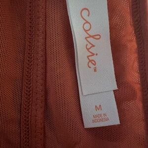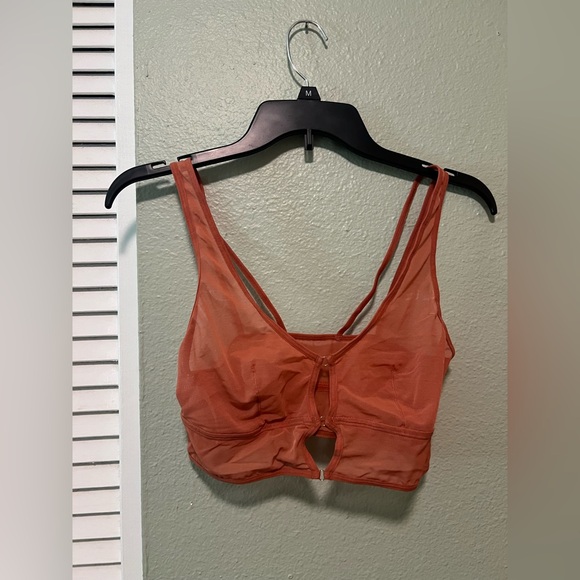 Rust-colored mesh bralette with a stylish cutout. Comfortable and trendy design.