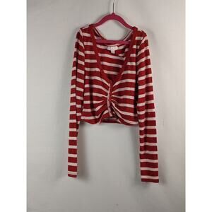 Colsie Striped Button Up Sweater Cropped Small Candy Cane Red White Stripe Cute