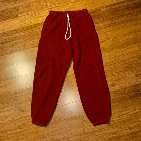 Vibrant cherry red sweatpants by Colsie. Elastic waistband with drawstring.