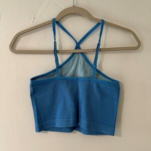 Colsie (Target brand) blue ribbed halter tank top. Size medium. Seamless material, square back, and cropped fit. ONLY WORN ONCE!! Feel free to make an offer!