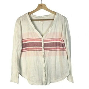 Colsie White Pink & Purple Stripe Thermal Knit Long Sleeve Button Down XS