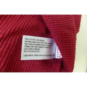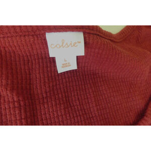 Colsie Women’s Cropped Henley Top LARGE Waffle Knit Red Long Sleeve Ruffle Hem