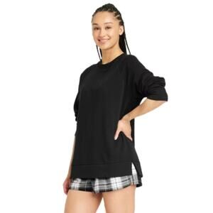 Colsie Women's Fleece Sweatshirt Black Crew Neck Pullover Raglan Long Sleeve XS