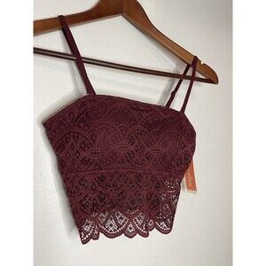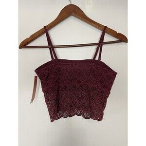 Colsie Women's Small Burgundy Lace Tank Top Adjustable Straps Shelf Bra NWT