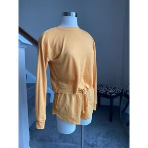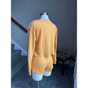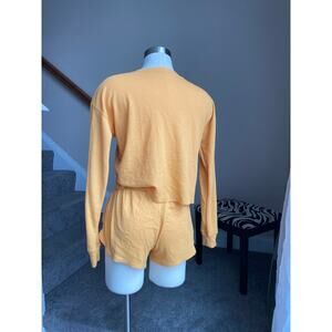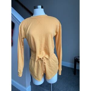 Colsie orange thermal/waffle textured lounge set, size XS. Great used condition. No flaws. TTS. Shorts are high waisted w/ drawstring waist and they have pockets. Top is slightly boxy fit and semi cropped