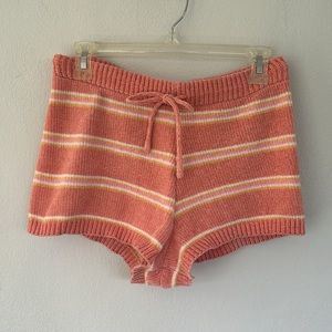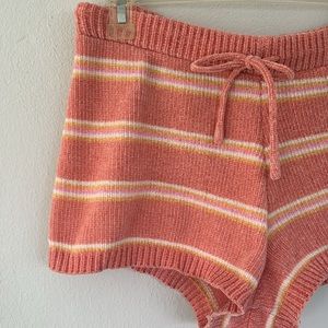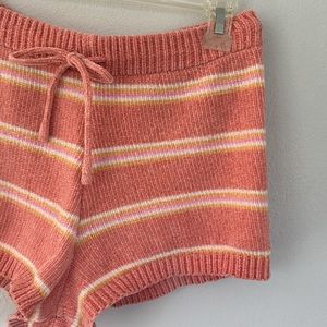 Colsie pink and yellow striped print soft and fuzzy chenille tie waist lounge shorts size small