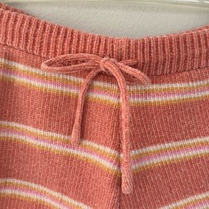Colsie pink yellow stripe chenille tie waist lounge shorts size small