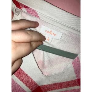 Colsie red, pink, and white cropped plaid fleece sweatshirt size medium