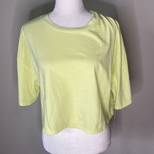 A neon greenish yellow cropped tee shirt by Colsie, size medium. New with tags!