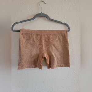 Colsie Ribbed Biker Shorts, Tan, Size Large.