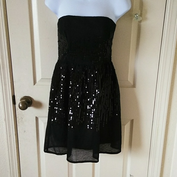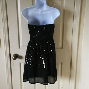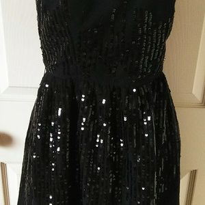 Side zipper black sequened dress M size 26 inch waist & 28 inches long excellent condition, missing belt.