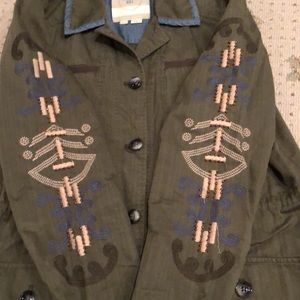 Olive green beautiful jacket. Perfect for spring and summer. Light cotton. Beautiful embroidery. Great used condition. No stains no odor