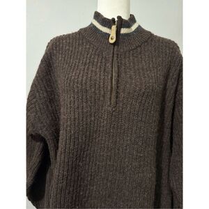 Columbia 100% Shetland wool brown knit thick 1/4 zip sweater size L no rips or stains
