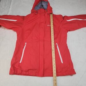Columbia winter jacket 3 in 1 red white fleece snowboarding skiing pockets removable hood insulated womens medium