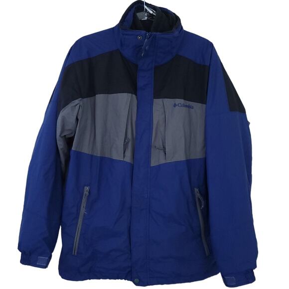 Columbia 3-in-1 Interchangeable Jacket Men Large Blue Gray Zip Up Winter Coat, Waterproof. Nylon shell, fleece polyester.