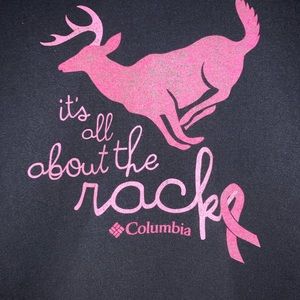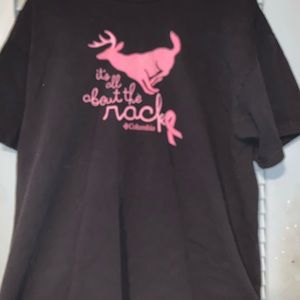 Columbia XL tshirt “It’s all about the Rack” the clot is Black tshirt with Pink design the shirt has been wore very few times if any..... Hunters tshirt for sure!!!!