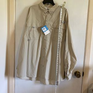 ◾️Description- New with tags Columbia long sleeve shirt//button up// collared//front pockets//one sleeve is more wrinkled than the other because it was rolled up while in the closet//approximately 30inches pit to pit