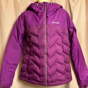 The Columbia 650 Purple Jacket Coat for women is a stylish and functional outerwear option for the winter and fall seasons. Made with polyester outer shell material and insulated with down, this mid-length jacket features a quilted design and long sleeves for added warmth. The softshell fabric type and zip closure make it easy to wear for casual occasions, while the logo accents add a touch of branding. Machine washable and in a solid purple color, this Columbia jacket is a versatile and practical choice for a outdoor-themed wardrobe.
