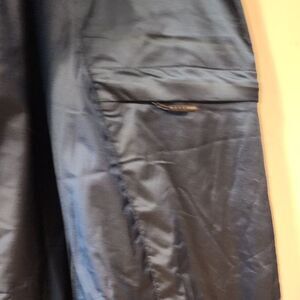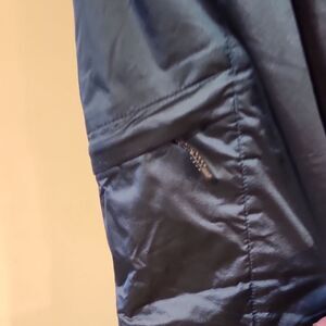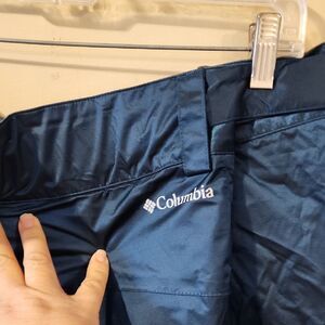 These Columbia cargo pants feature a striking color-block design in shades of blue, crafted from a water-resistant synthetic material ideal for outdoor adventures. The full-length style ensures comfort and protection, making them a versatile choice for various activities adjustable velcro zip pockets New condition