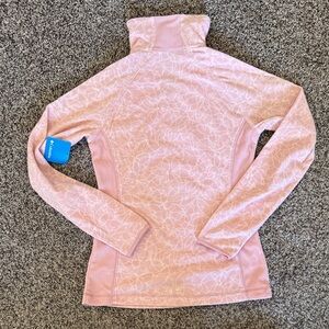 Soft light pink pullover. Features a quarter-zip design. Ideal for everyday comfort.