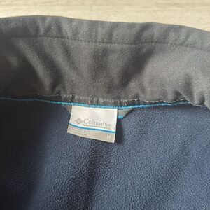 This wind-and-water-resistant softshell will keep you warm—whether you want to stand out or blend right in. It's built for foul-weather outings, with a comfort stretch fit, an adjustable hem, and adjustable cuffs. Made of a durable yet light 100% polyester, with a soft, abrasion resistant chin guard and multiple zippered pockets Columbia Sportswear Company Logo Fleece Lined Tech Jacket men’s M blue Fabric type