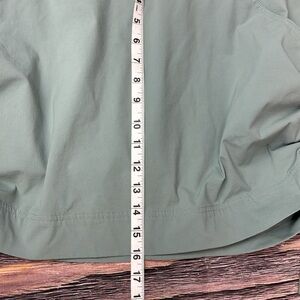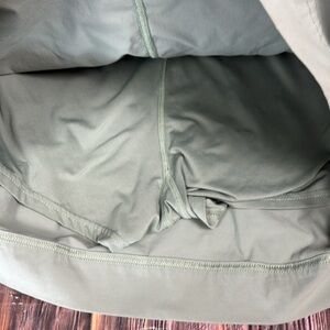 This is in good pre owned condition. Minimal wear. Green with gray undertones. Built in shorts/ underwear.
