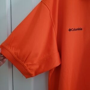 Orange performance fishing gear omni- shade shirt. Auburn University and Columbia logos embroidered on front. Panel overlap on back. Breathable material. Perfect outdoor performance shirt.