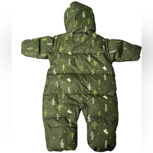 Absolutely perfect condition. Only worn a few times. Cozy puffer snow suit bunting in a cute green nature print. Folds over hands and feet detail for warm fingers and toes! infant size 6 months