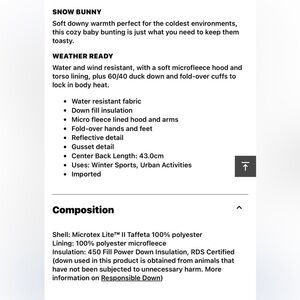 "snuggly bunny bunting" from columbia. water resistant fabric.