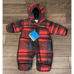 Columbia Baby Snuggly Bunny Bunting Down Hooded Snowsuit 6 Months Plaid Red Black New