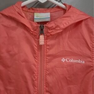 Keywords: Columbia, baby jacket, toddler jacket, windbreaker, full zip, pink, infant coat, outerwear, lightweight jacket, kids clothing, spring jacket, fall jacket, hooded jacket