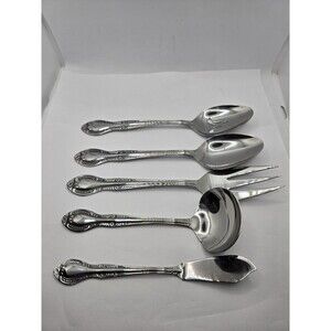 Brand New set of Serving ware. Meat Fork, Slotted Spoon, Serving Spoon, Ladle and butter knife. 5 pcs. Brand New