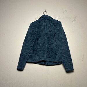 Women’s fleece jacket, size L, green, Sherpa lining, winter tech outerwear, good condition.