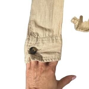 Columbia Beige Long Sleeve Hooded Cotton Hemp Blend Hiking Shirt Women Sz S