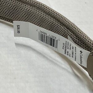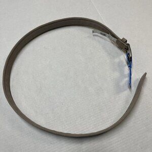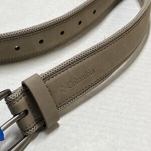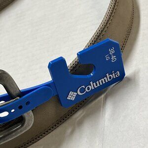 Columbia Belt Mens Large 38-40 Taupe Canvas Leather Brushed Sliver Buckle Preppy
