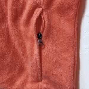 Like new Columbia Benton Springs fleece jacket in soft coral color with zip front, stand collar, zip pockets and cozy warmth—perfect for outdoor wear, layering, or casual everyday comfort.